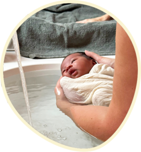 Un bain symbolique pour bébé, qui lui permet de libérer les tensions psychiques et physiologique de la grossesse et la naissance. Il apaise les émotions et renforce le lien parent-bébé.